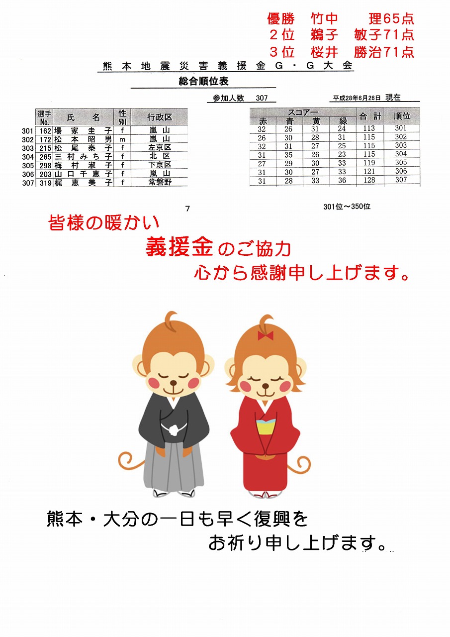 ◆◆熊本地震 災害義援金グラウンドゴルフ大会 成績表 --7--