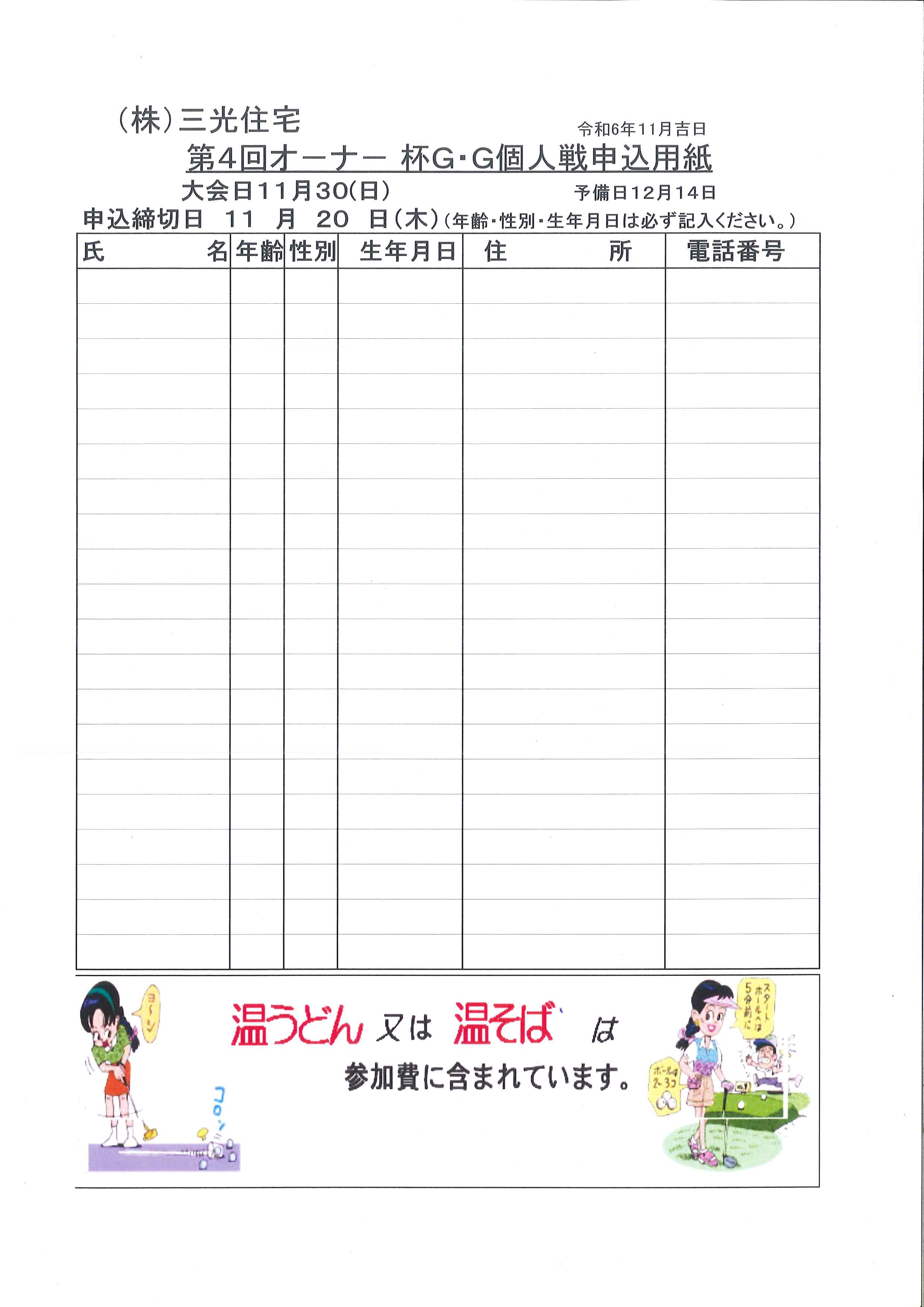 ◆◆第4回オーナー杯 申込用紙