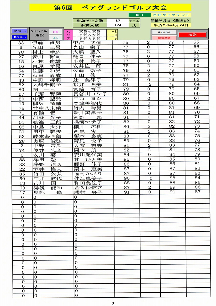 第6回 三光杯ペア大会 成績表 --2--