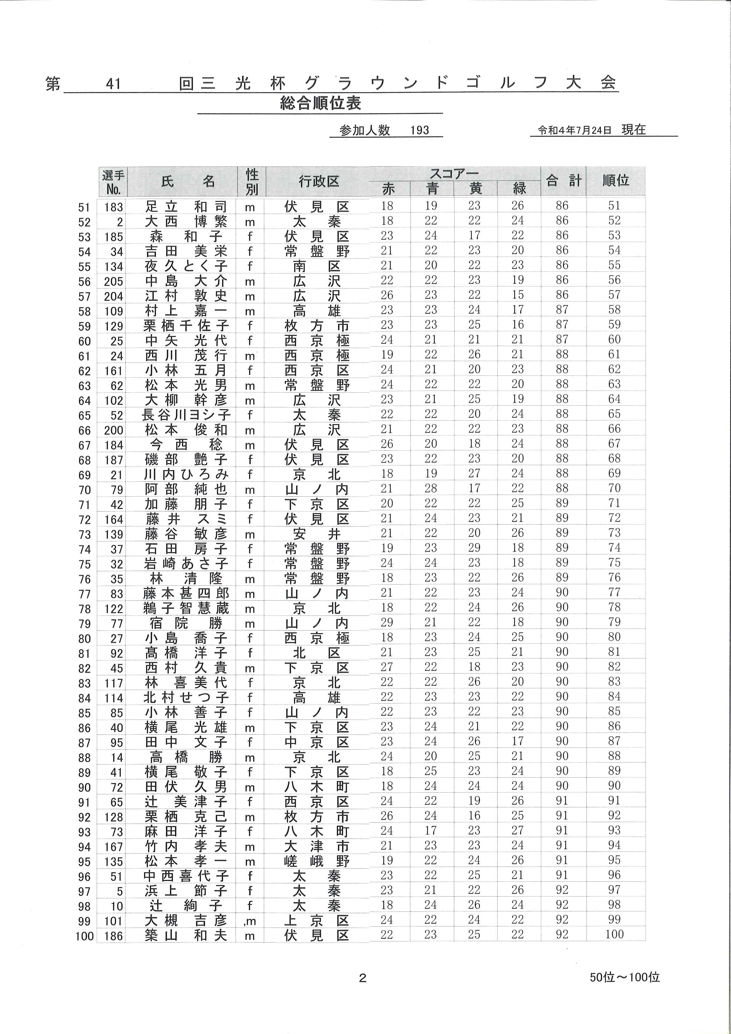 第41回三光杯 成績表--2--