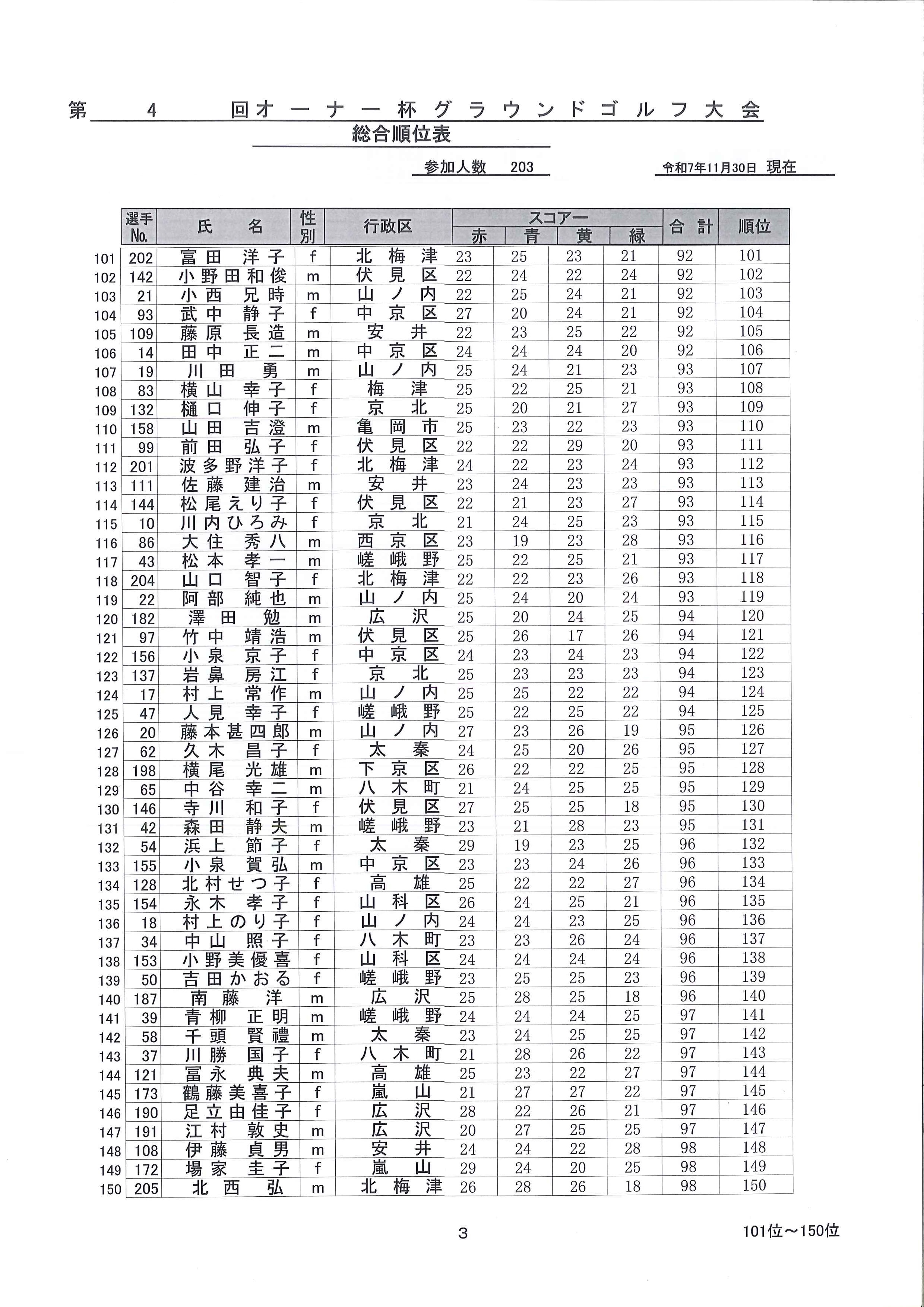 ◆◆第4回三光住宅オーナー杯 成績表--3--