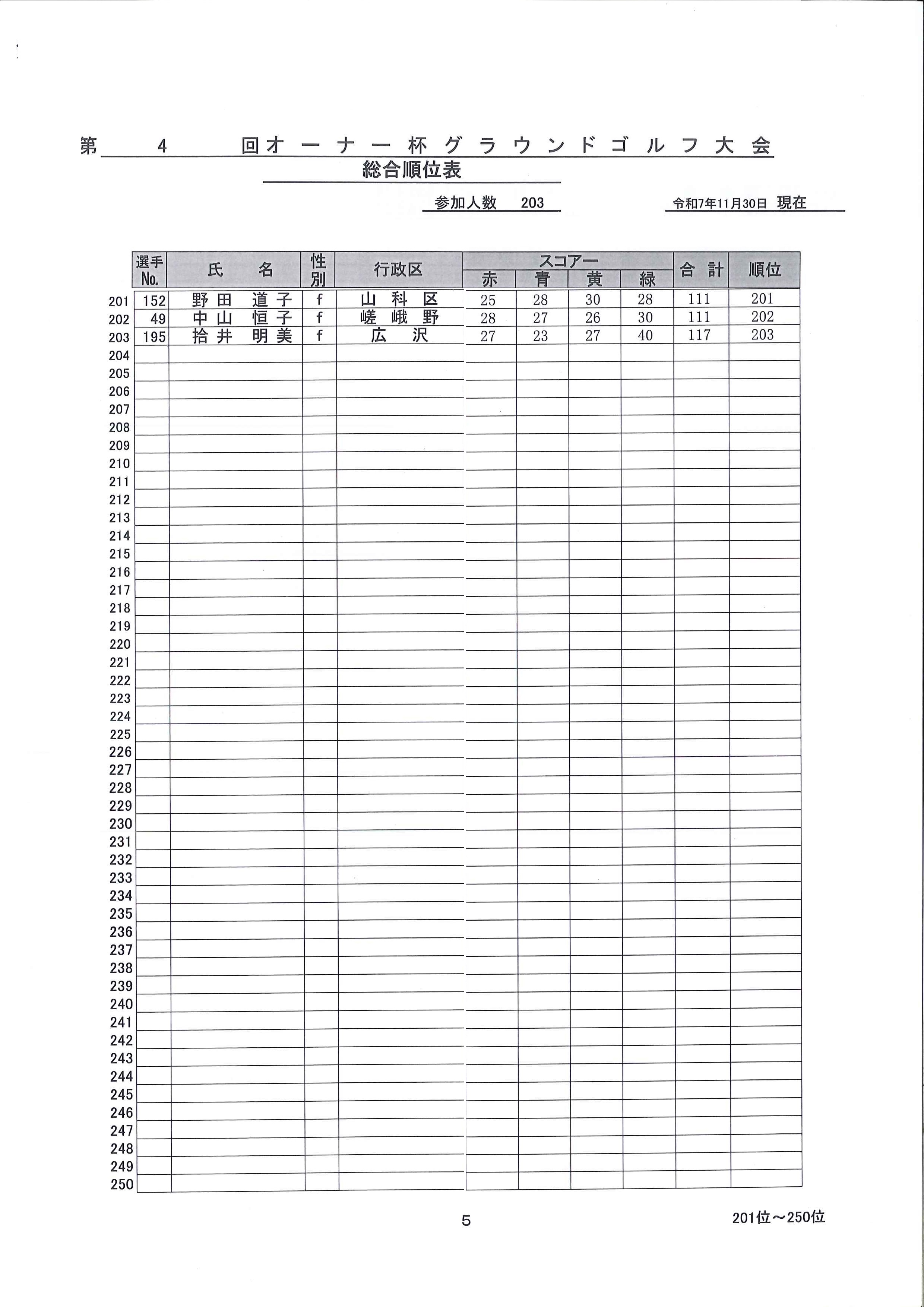 ◆◆第4回三光住宅オーナー杯 成績表--5--