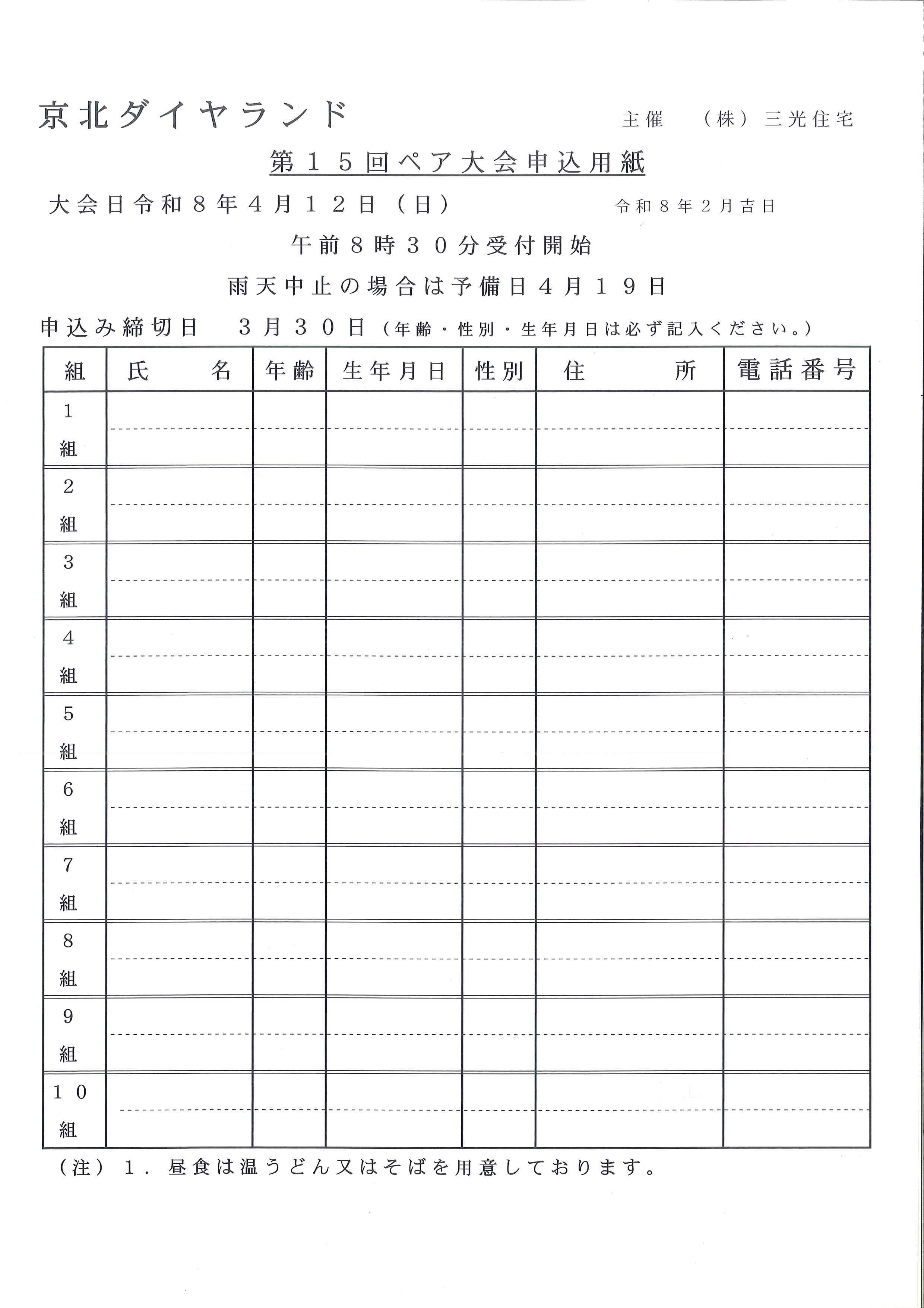 ◆◆第15回グラウンドゴルフペア大会 申込用紙